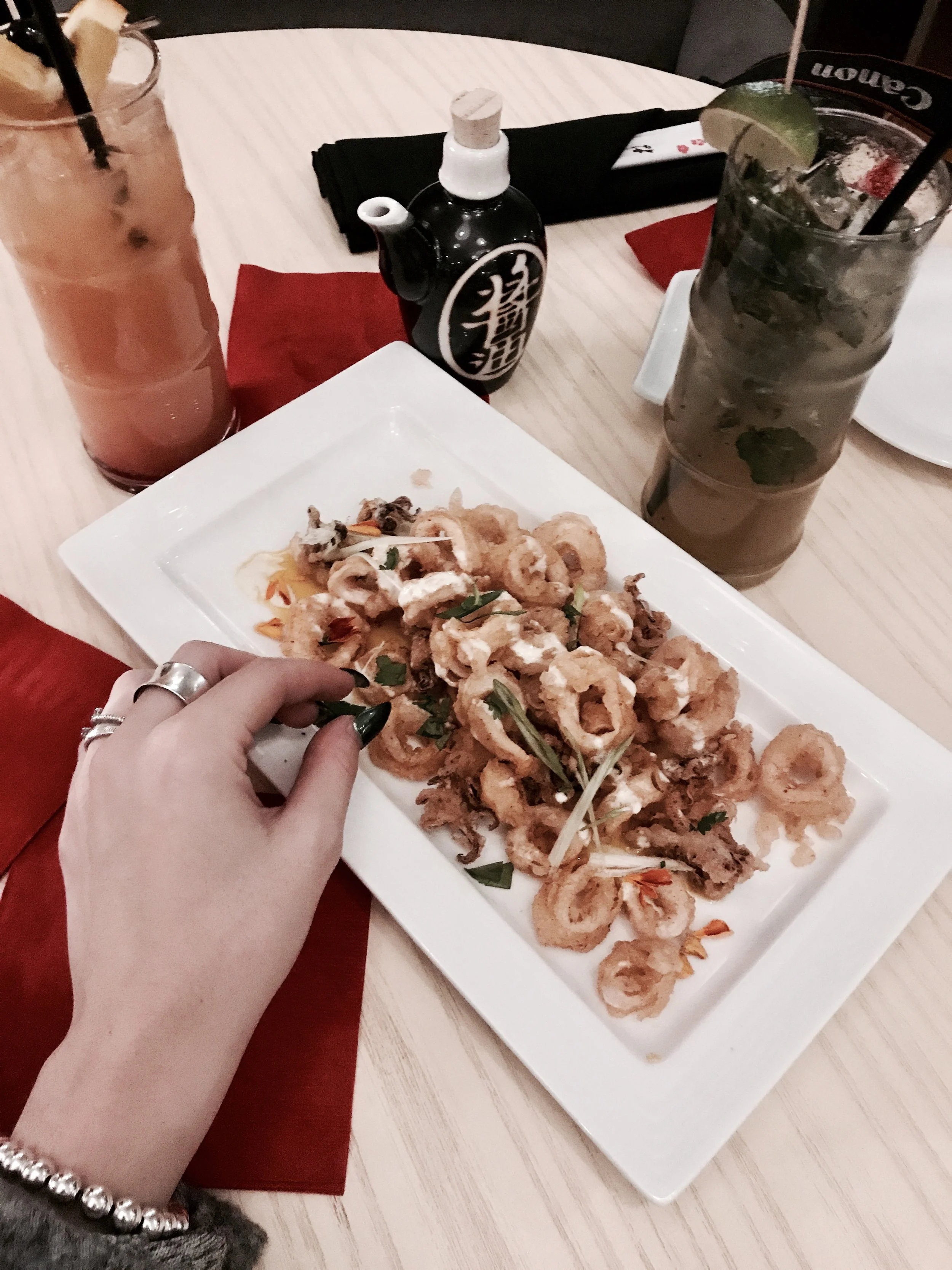 Enjoying the best of Benihana's Japanese Steakhouse, Jun the manager put together a lovely sake tasting menu with some of their most popular dishes . Bringing out selections of fresh sashimi and sushi, dynamite calamari, surf and turf and more. They even do teppanyaki shows, which we got a little private preview of. Ending the night with flourless chocolate cake, it's a great way to have your cake and eat it too (without wreaking havoc on my brownie-loving body...)